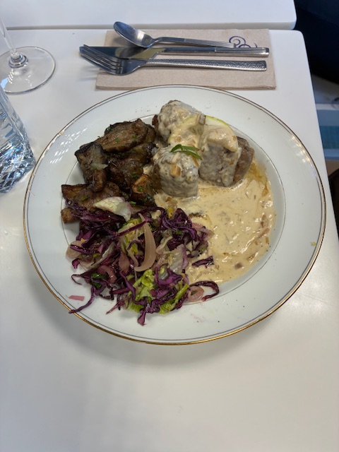 Le repas qui suivit (boulettes de bœuf fondantes, sauce crémeuse au citron et oignons caramélisés, topinambours rôtis, petite salade fraîche et gâteau au chocolat & crème anglaise) fit le plaisir de toutes les golfeuses. Un bon moment passé ensemble.